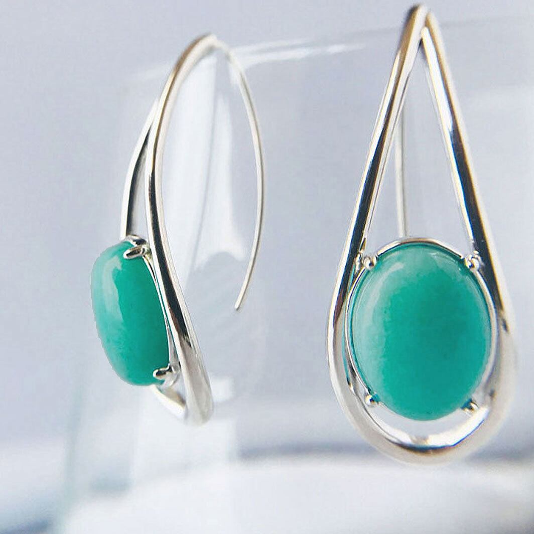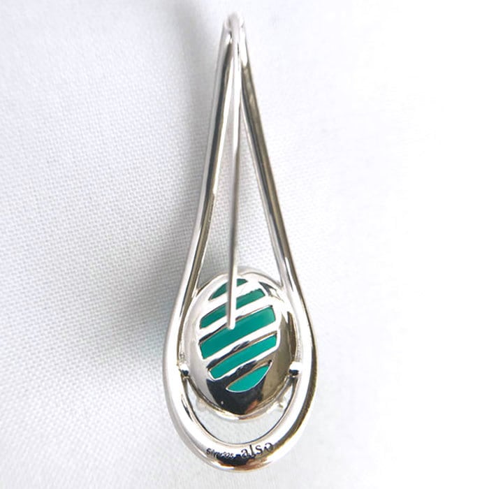 ペルー産の品質の良いアマゾナイトを使用した、ボリュームピアス。ブルーがかったグリーンの石とシルバーの組み合わせは落ち着きがありつつも顔周りを華やかにします。