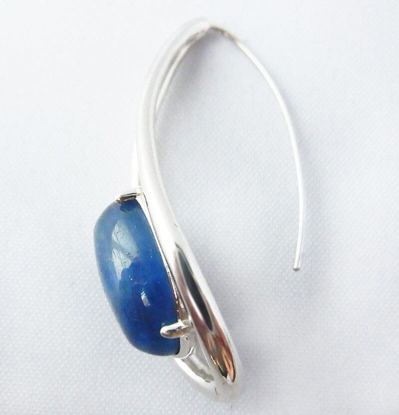 少し透明感のある藍色をしたカイヤナイトは、内部の結晶が角度によって輝き宇宙的。それを大ぶりなピアスに仕立てました。弧を描いたドロップ型は、存在感がありながら柔らかさもあります。